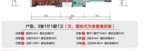 2、根據公式:各房間所需片數=各房間的房屋面積/(單片暖氣片的散熱量/100)